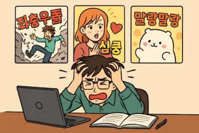 韓国のウェブトゥーンが世界的に成功した背景には、スマートフォンに最適化された縦スクロール形式だけでなく、感情を直感的に伝える擬音語(의성어)・擬態語(의태어)の豊かさがあります。日本語の漫画もオノマトペが多様ですが、韓国語は特に말랑말랑